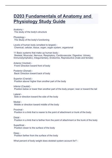 Download Study Guide for Fundamentals of Anatomy and Physiology Doc